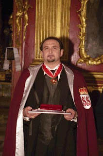 Його Високопревосходительство Князь VIII Великий Магiстр Ордену Святого Станiслава Юлiуш Новiна-Сокольницький посвячує у лицарi ордену Святого Станiслава Його Високопревосходительство Михайла Михайловича Рябця, Голову Центральної виборчої комiсiї.